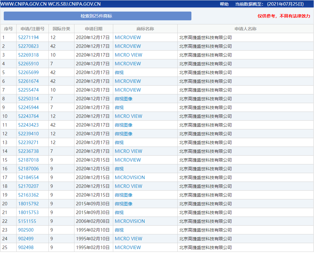 北京高捷盛世科技有限公司认为,“腾讯微视”系列商标与自己名下在先注册的“微视”、“微视图像”、“Microview”、“Microvision”等商标构成近似,于是请求商标局无效腾讯公司相关商标。